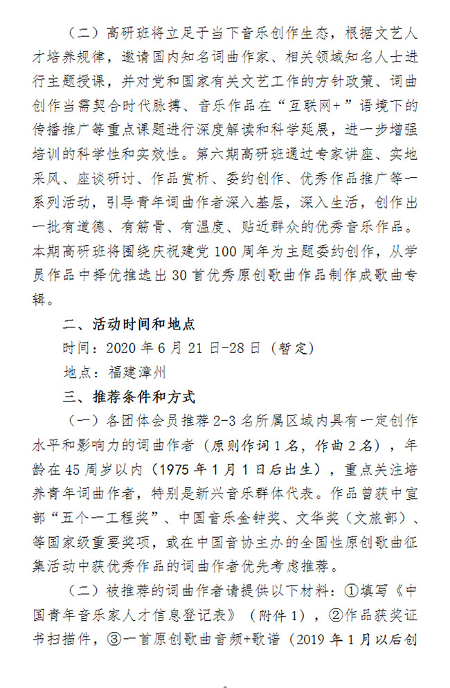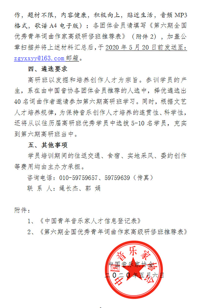 中国音协:关于举办第六期全国优秀青年词曲作家高级研修班的通知