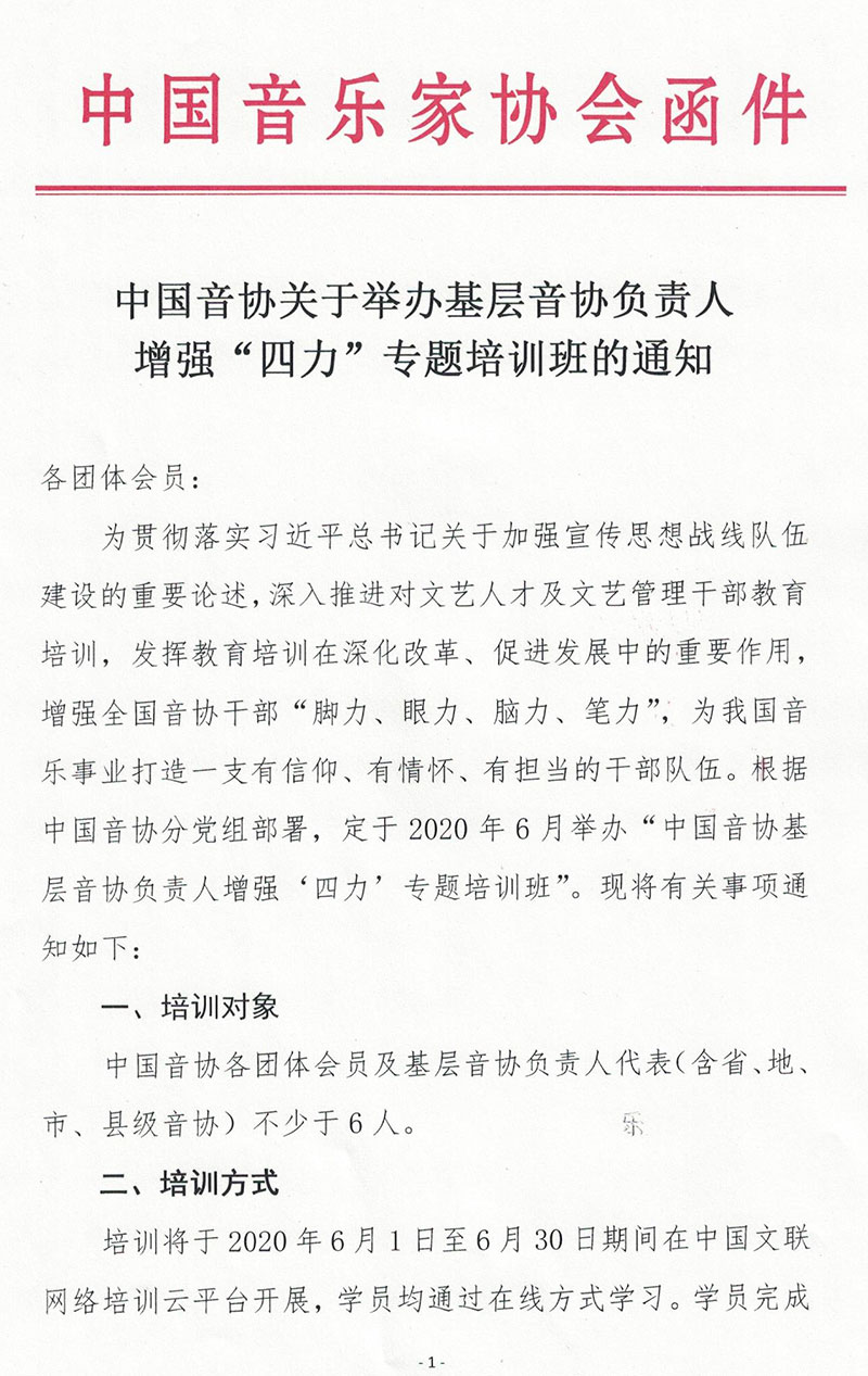 中国音协:关于举办基层音协负责人增强“四力”专题培训班的通知