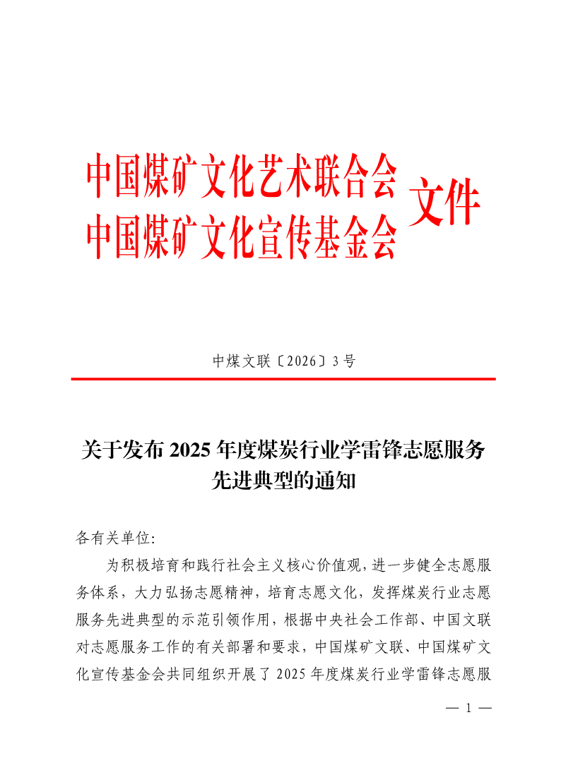 关于发布2025年度煤炭行业学雷锋志愿服务先进典型的通知
