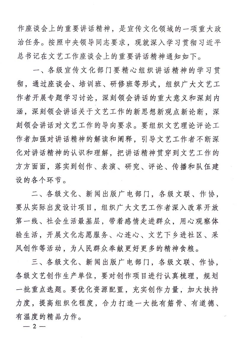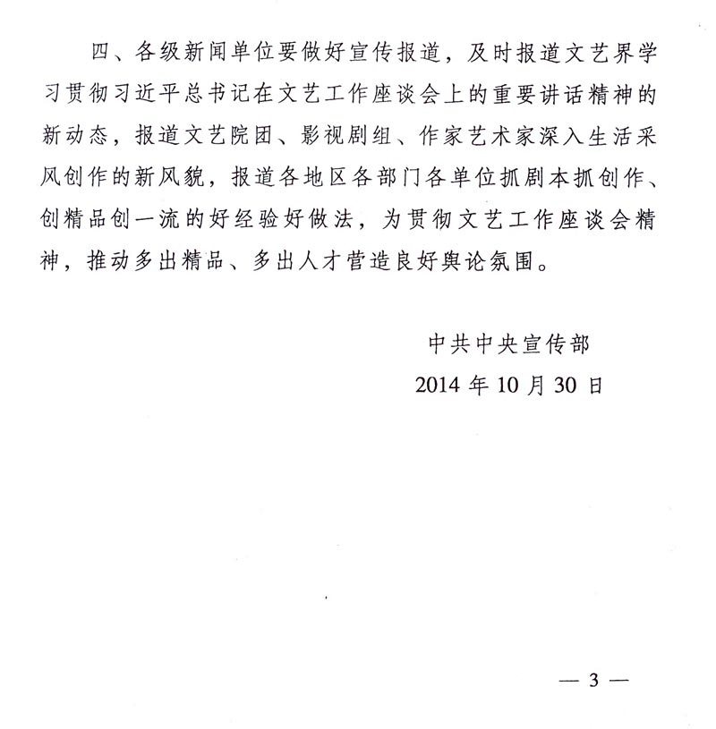 中宣部关于深入学习贯彻习近平总书记在文艺工作座谈会上的重要讲话精神的通知 来源: 作者: 时间:2014-12-18 【字体:小 大】 智能标签: 中宣部 习近平 文艺工作座谈会 相关内容 分享到: 【打印正文】