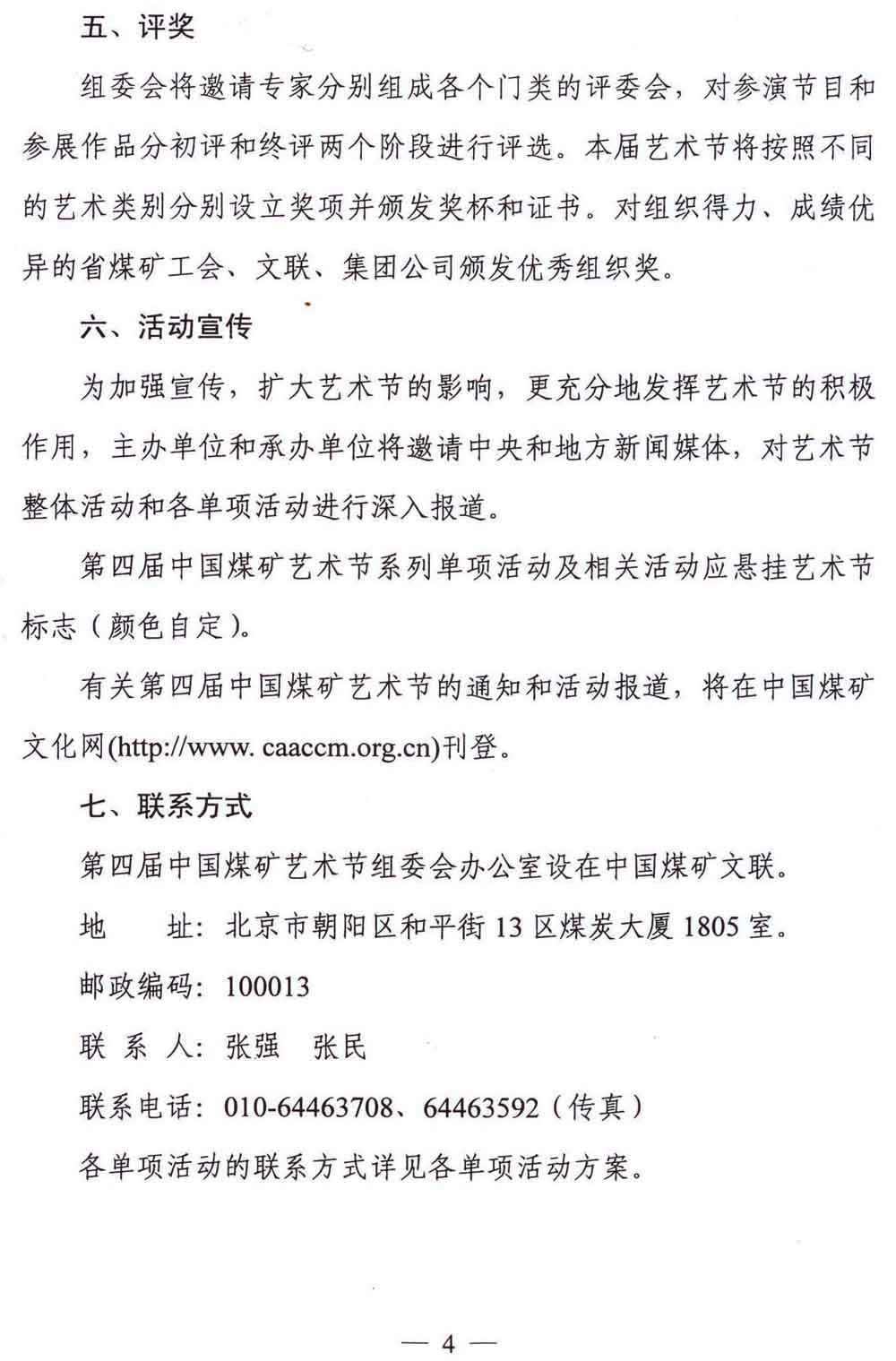 关于举办第四届中国煤矿艺术节系列单项活动的通知 来源:中国煤矿文化网 作者: 时间:2012-06-02 【字体:小 大】 附件:第四届中国煤矿艺术节组委会名单、系列单项活动方案及报送表 分享到: 【打印正文】