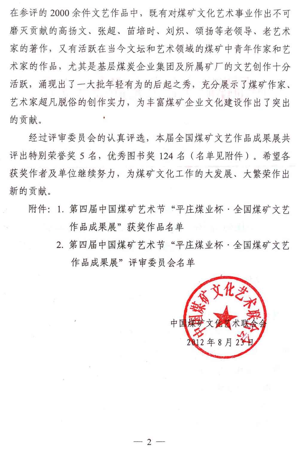 关于第四届中国煤矿艺术节“平庄煤业杯·全国煤矿文艺作品成果展”评奖揭晓的通知