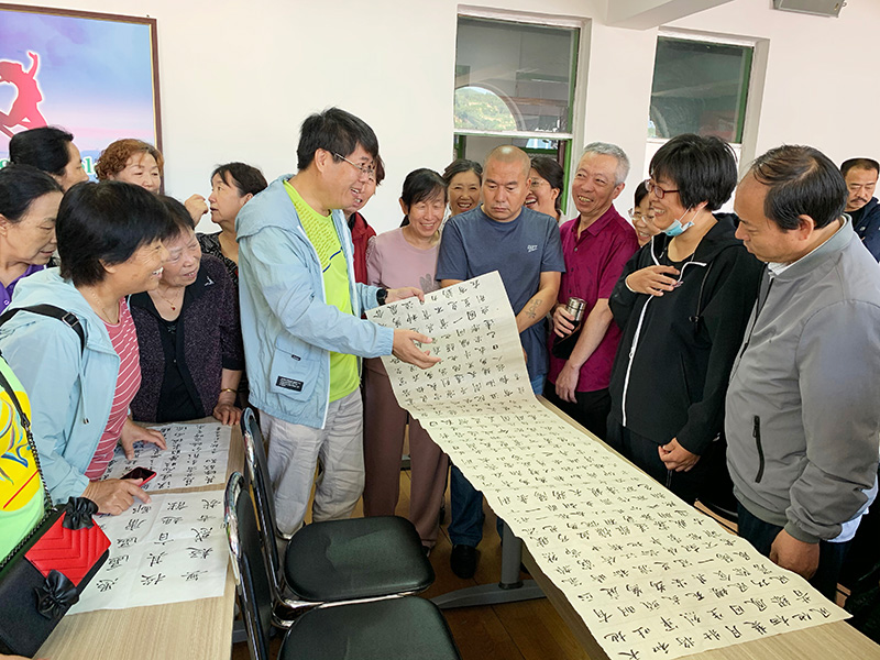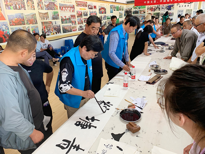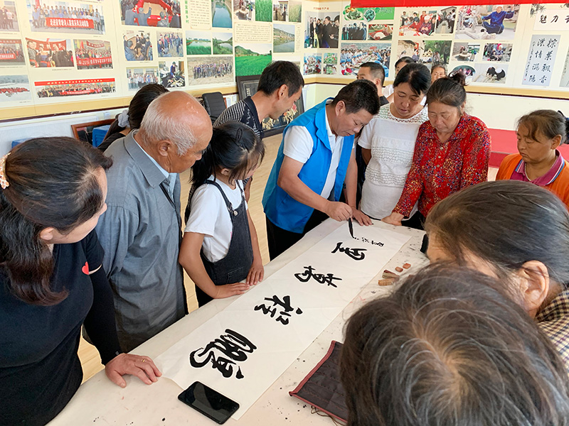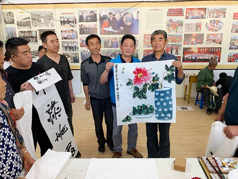 文艺志愿者们为临县群众现场创作书画作品